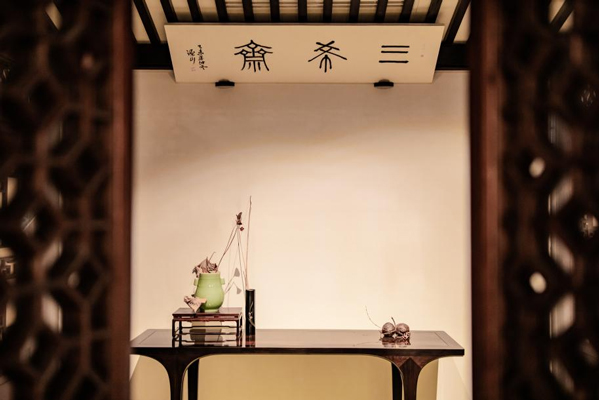 一闲庭由众多万字格以纯手工榫卯制作而成。伴随着阳光从万字格的缝隙中沐浴整个空间,小桥流水,鸟语花香,可品茗阅读,不失为“ 人生难得一日闲”。