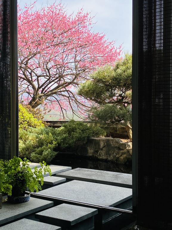 序:癸卯立春后某日,条风初布,一壑君忽起赏梅之念,乃微信语与义乌楼君立剑曰:“兄愿约而赏梅乎?”楼曰:“近来疏懒,无此兴也。”一壑又曰:“兄曾见百尺之梅乎?”楼曰:“不曾。”一壑曰:“请兄一见。”楼曰:“善!”遂于正月二十,约往东阳城南之雷弄山房。时宿雨初晴,一株老梅树虬枝苔干,万花迎人,殊可爱也。楼曰:“焉有百尺之高?”一壑曰:“君不见此梅植于九层楼之上乎?自地面而算,岂无百尺之高!”二人乃挝掌大笑,绕梅品评不止。